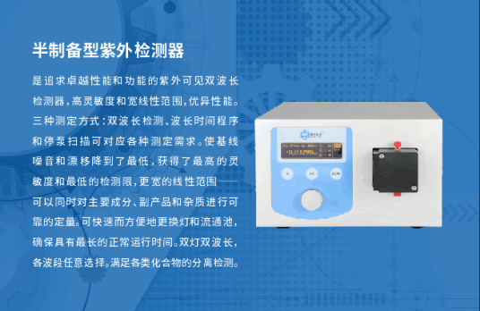 追求卓越性能和功能的紫外可见双波长检测器,高灵敏度和宽线性范围,优异性能。